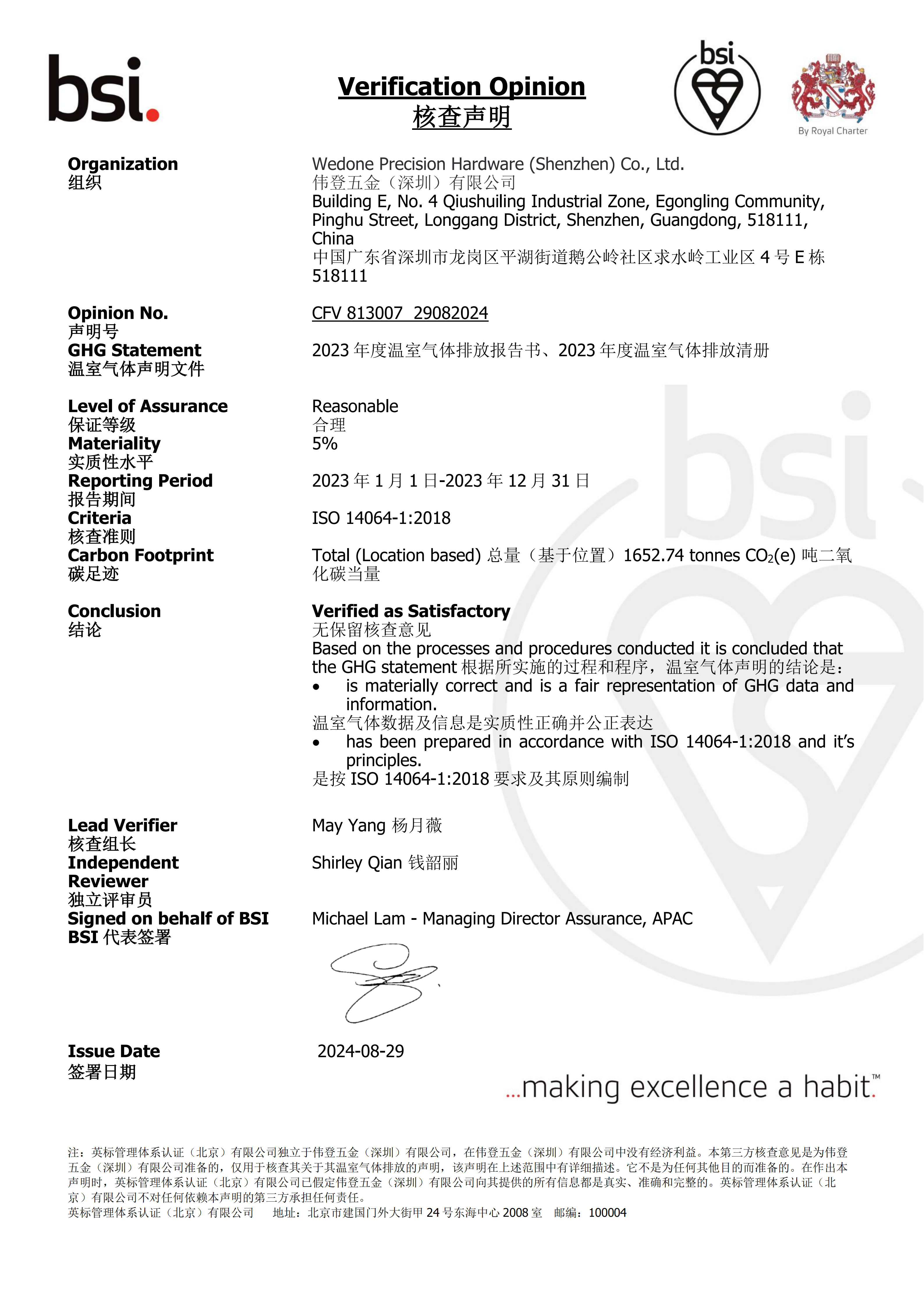 ISO14064-1:2018 温室气体排放核查声明 (伟登深圳)