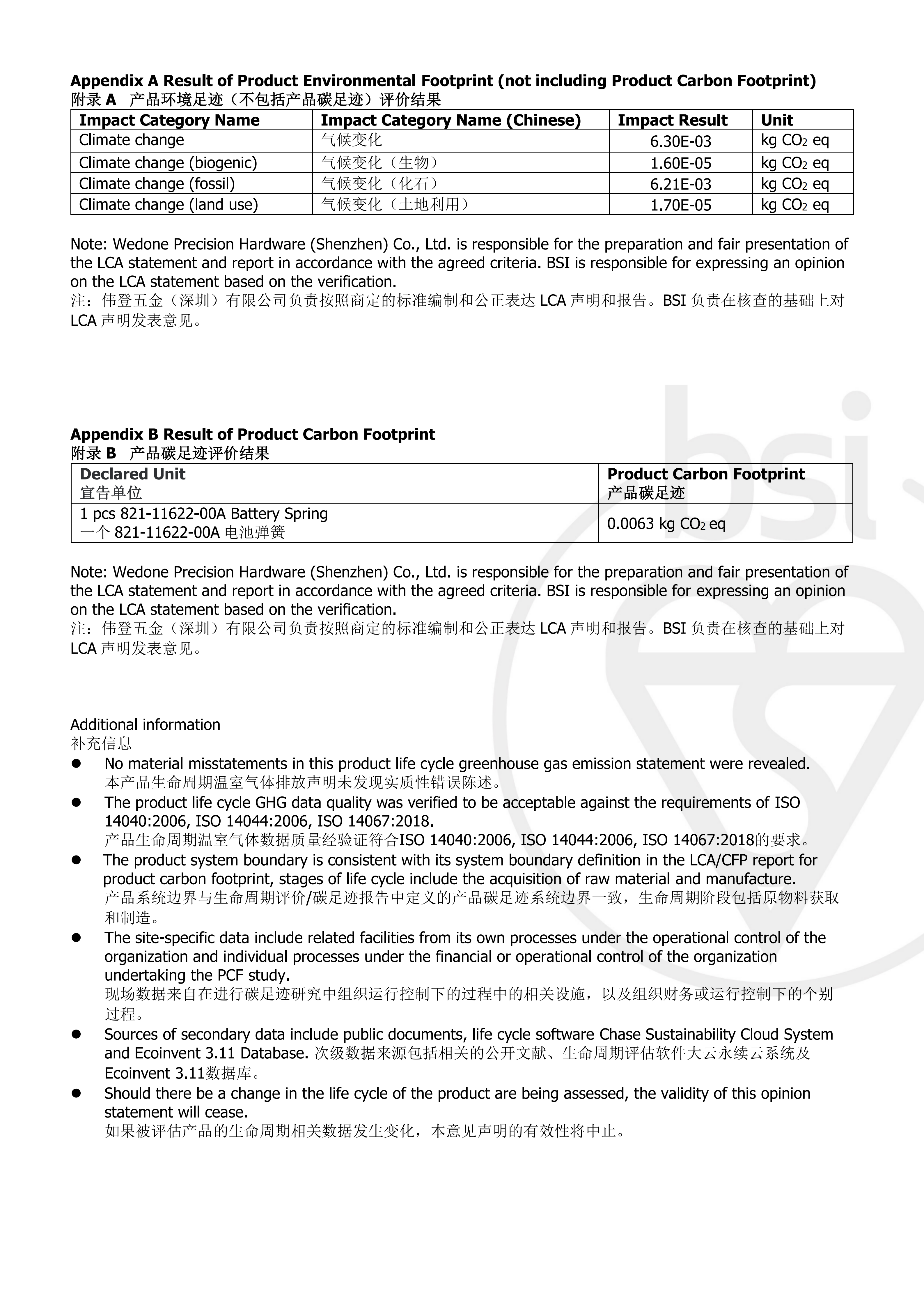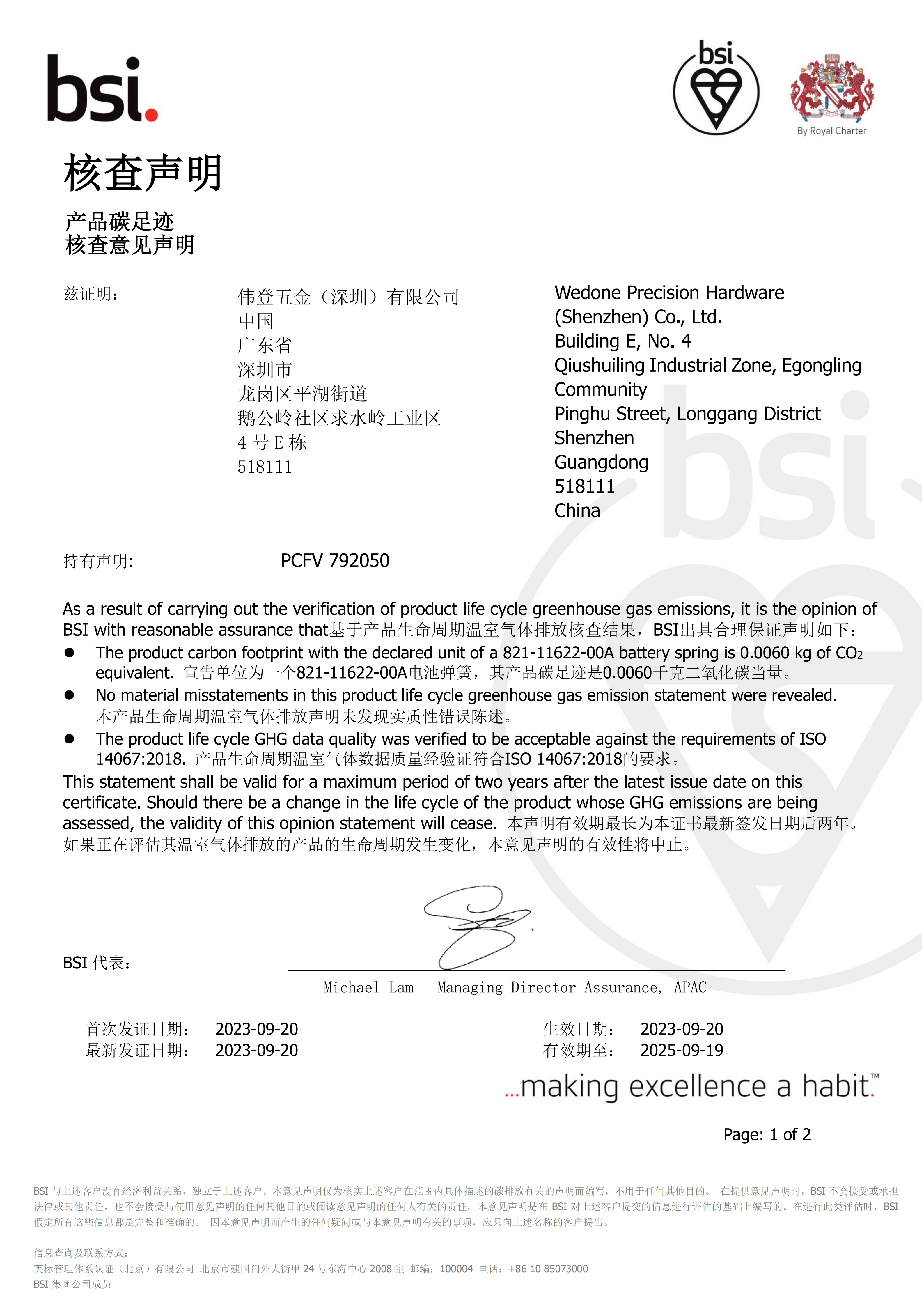 ISO14067-2018 产品碳足迹核查声明( 伟登深圳)